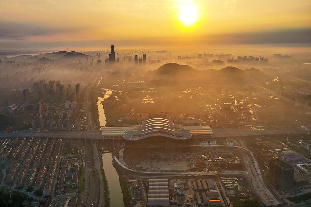 組照1.拍攝于2021年10月27日早晨建設(shè)中的杭臺高鐵臺州站。