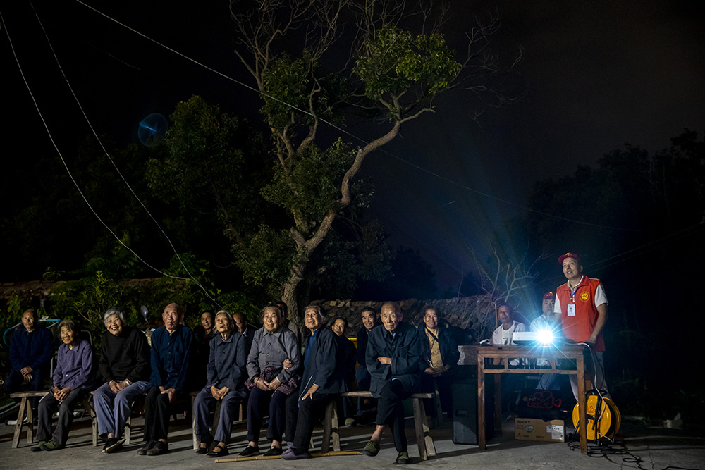 留守在大山里的老人,白天干點農活,晚飯后就上床休息。為老人圓夢,成立“愛心電影院”老人們口中的阿華,是溫嶺市公安局職工張金華。問起愛心電影公益項目的初衷,張金華說起一件往事。2017年初,他和一群志愿者來到溫嶺市城南鎮(zhèn)照谷村上洞自然村做公益。該村位于大雷山腳下,處于溫嶺和玉環(huán)的交界處,這里有4戶人家共7人,平均年齡超過70歲。80多歲的李小春告訴阿華,他40多年沒看過電影了,很想再看一次,但年齡大了,腿腳不便,無法下山。阿華就想,能否為這些大山里的老人做點事,搞個流動的“愛心電影院”?回到溫嶺市區(qū)后,他把自己的想法告訴朋友,大家?guī)兔柚穗娪澳徊、筆記本電腦、投影儀、音箱和電纜線圈等5件套的設備,成立了“愛心電影院”。