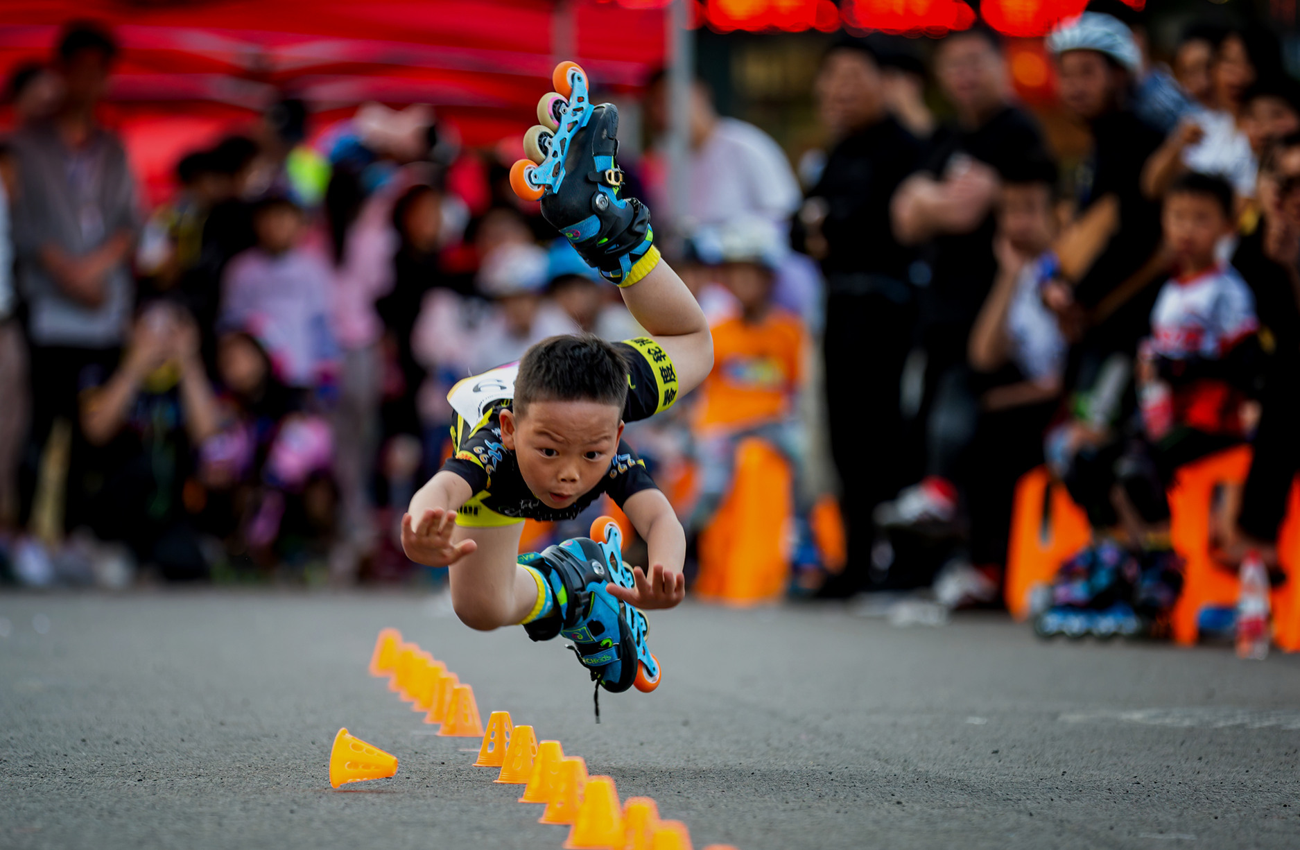 作品介紹: 第一屆臺(tái)州市小年滑輪比賽現(xiàn)場(chǎng),一小朋友在花樣滑輪比賽時(shí),不慎跌倒,這是抓拍到小朋友即將摔倒的瞬間