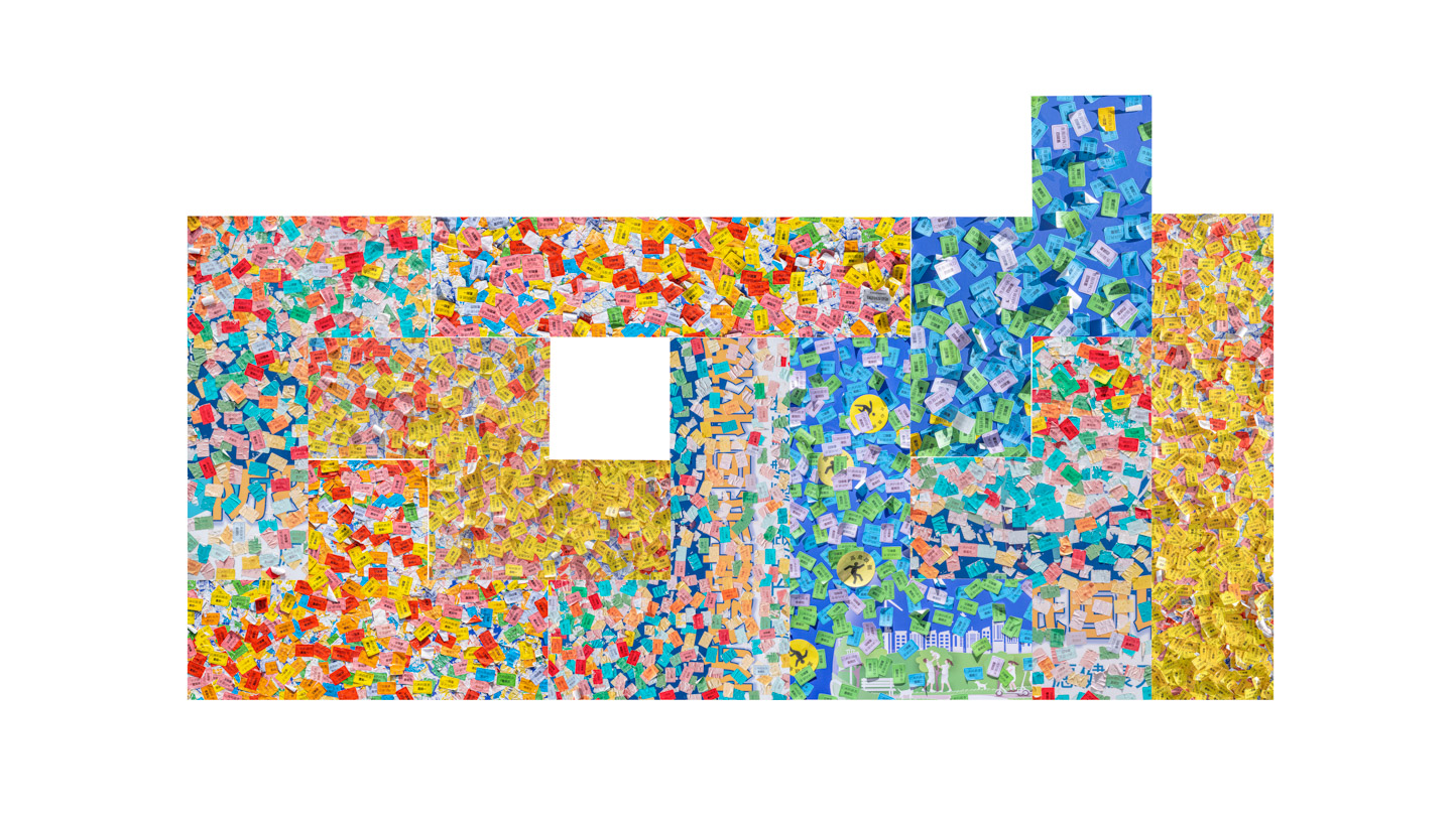 拍攝思想:看著展板上密密麻麻成千上萬的小小貼紙,相當于一個個活生生的人,一個個被病痛侵擾折磨的患者和家屬,我們都生活在一個條條框框的世界,各種規(guī)章制度局限了我們的生活貫穿了我們的人生,生老病死,苦痛磨難,很多時候生不由己,但是在小小的角落里我們也可以自由的發(fā)揮思想和行動,社會形態(tài)特征決定了我們的行動框架,但是情感的多樣性又創(chuàng)造人生的不同展現(xiàn)形式,困難里也有思維跳脫的碰撞,病痛里也向往詩夢的遠方。