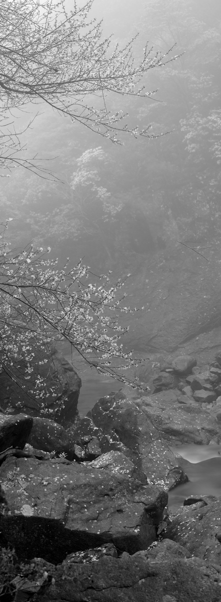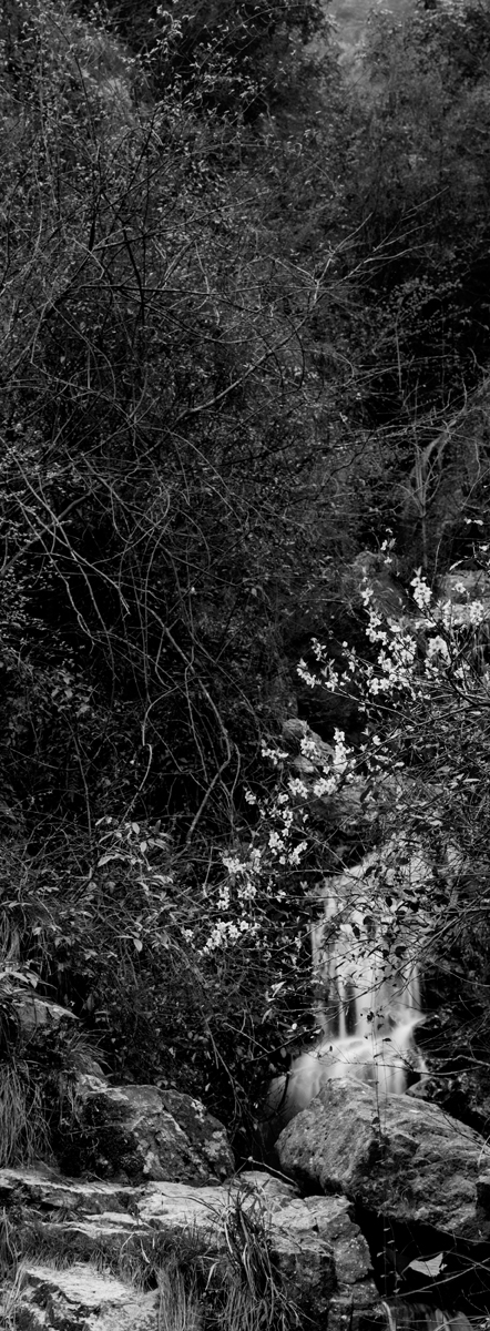 全景式搜羅了天臺山溪流,以大幅直條的構圖形式拍攝,圖片均為接片,展覽可以巨幅呈現(xiàn),懸掛欣賞。 我喜歡雨中的小溪流,喜歡聽小溪流潺潺的流水聲,喜歡看溪流水邊肆意開放的山花,還有山澗清脆的鳥鳴。我覺得那是世外桃源,他連接我的內心,直擊我的心靈,我喜歡那種清幽和恬淡。拍攝源遠流長作品可謂踏遍天臺山所有溪流,尤其偏遠人跡罕至的溪流,更是保留原生態(tài)風景,令人留戀。 后期去色讓風景更純粹。 讓天臺山水、潺潺溪流,凝固在畫圖之中,讓觀者仿佛回到過去,也看見了未來。