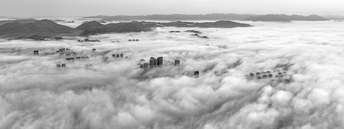 清晨臺州的云海,讓臺州主城區(qū)變得更加美麗,城市的高層建筑在云卷云舒中忽隱忽現(xiàn),尤如人間仙境。