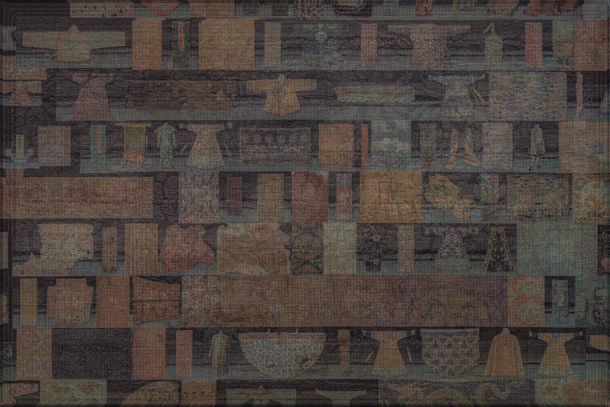 作品介紹: 碎片素材拍攝于杭州中國絲博館和臺州非遺。結(jié)合當(dāng)代語境以拼貼等形式展開創(chuàng)作,以此呈現(xiàn)個人對古代紋樣的解讀。古紋樣是先人為我們留下的珍貴文化瑰寶,它具有歷史、文化、藝術(shù)等多方面價值,是研究某一階段文化遺產(chǎn)的重要實物資料以及承載社會變遷的歷史見證;記錄著時光流轉(zhuǎn)與空間轉(zhuǎn)變的場域。隨著現(xiàn)代技術(shù)的發(fā)展,借助數(shù)字科技融合的理念,中國已經(jīng)將古代紋樣帶入現(xiàn)代服裝設(shè)計,體現(xiàn)東方智慧和絲綢的完美融合。