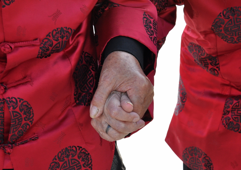 一對老夫妻手牽手,執(zhí)子之手與之?dāng)y老!