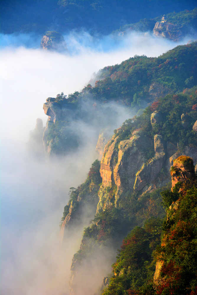 冬日的清晨,輕霧繚繞,和煦的陽光照在方山的崖壁上,方山十分秀美。