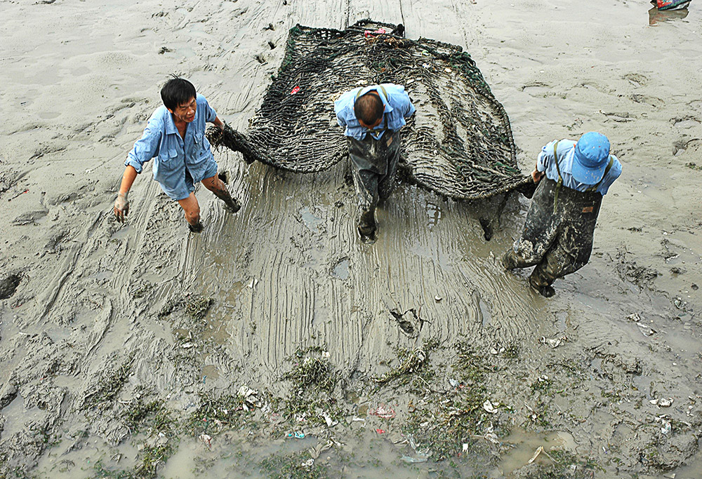 作品標題: 蘭色宣言(組照1---4) )1 保護海環(huán)境2清灘大行動3海涂大清淤4藍絲帶行動