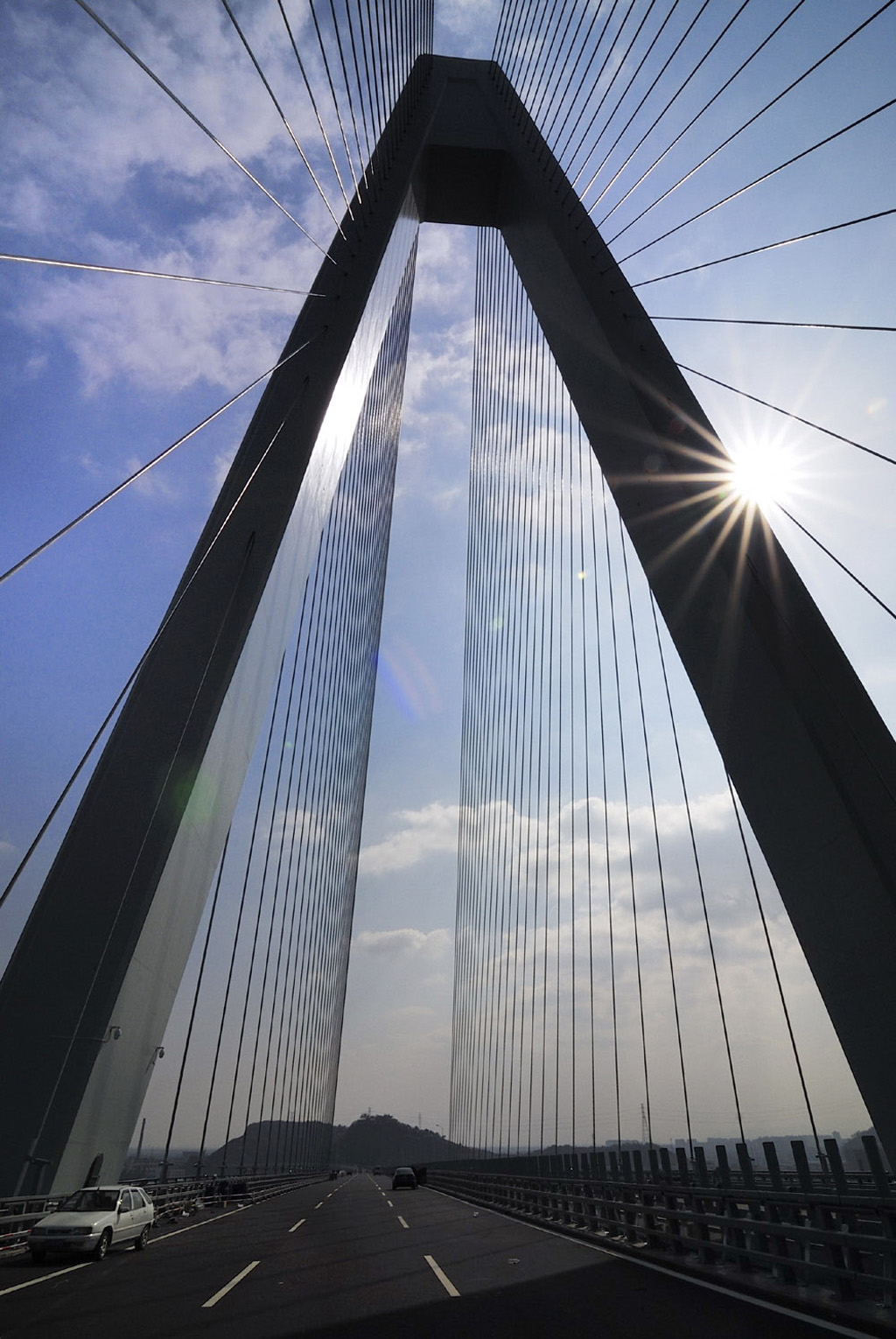 二橋的風(fēng)景,多樣而絢麗,橋架纜索,如大地琴弦,演奏的是交通人奮進的交響曲。