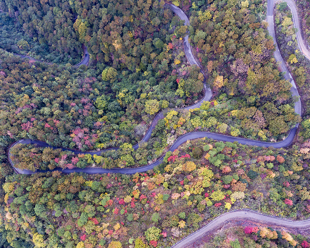 天臺天培線佛隴腳下,盤山公路兩旁秋色斑斕。