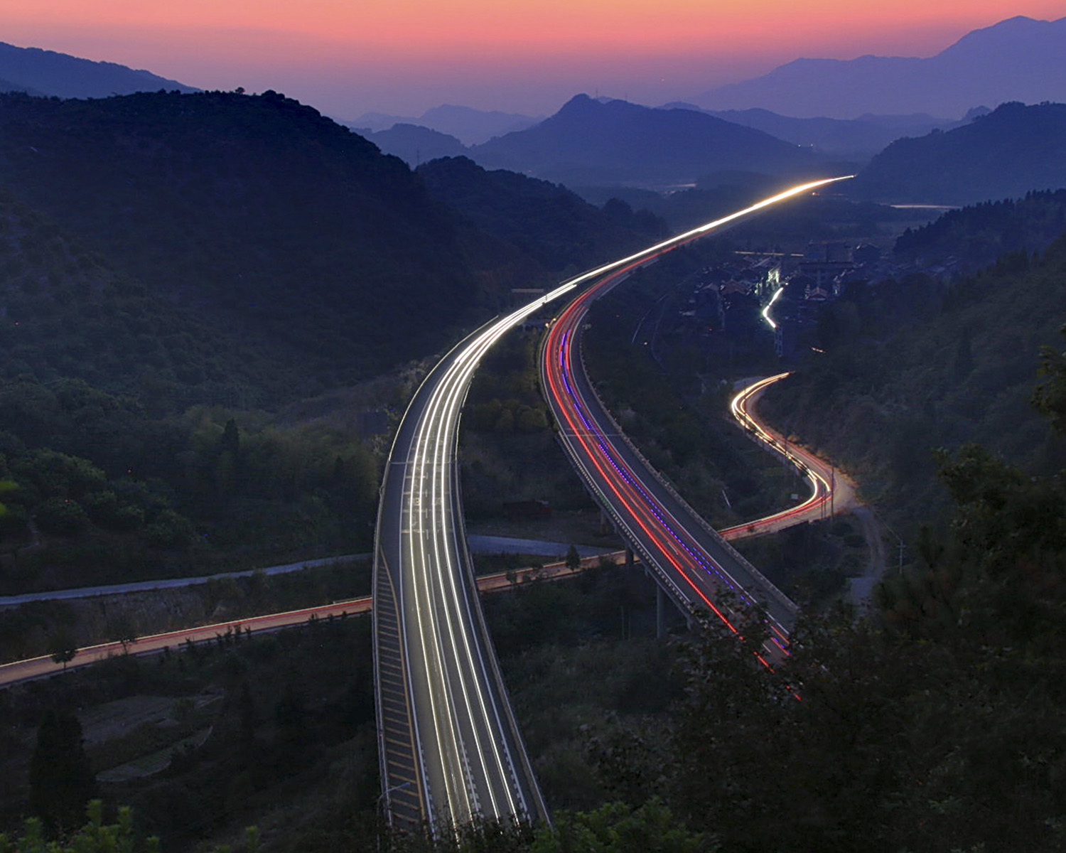 作品介紹: 夜色下仙居臺(tái)金高速和省道的交匯,構(gòu)成了一幅似蛇舞的畫(huà)面