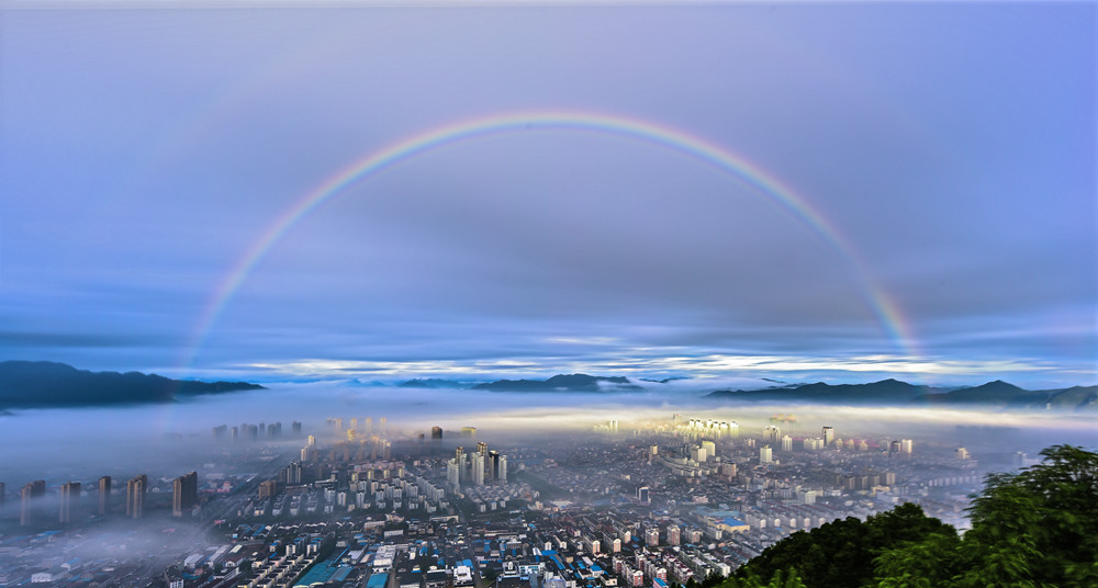 雨后初晴,淡淡的云;\罩著整個(gè)黃城,不經(jīng)意間,一條彩虹悄悄地橫跨整個(gè)黃城。