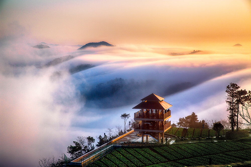 作品介紹: 眼前一片云霧繚繞,很是壯觀、迷人,金色的陽(yáng)光灑在云海上,形成了這幅云霞醉瓊臺(tái)的美麗畫卷。