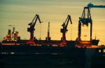 洪子根《夕陽下的碼頭》