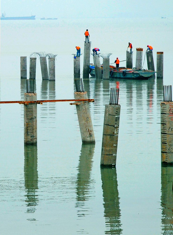 洪子根《椒江海門港碼頭勝景》