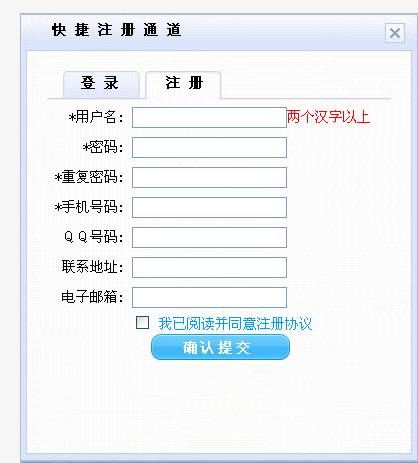 3.在彈出的注冊窗口中,填寫相關(guān)資料進行注冊。有幾點需要注意,用戶名必須全是漢字,2個漢字以上,必須填寫手機號碼和QQ號碼。方便我們通知獲獎信息到個人。確認提交若注冊成功會自動跳轉(zhuǎn)到上傳作品頁面。