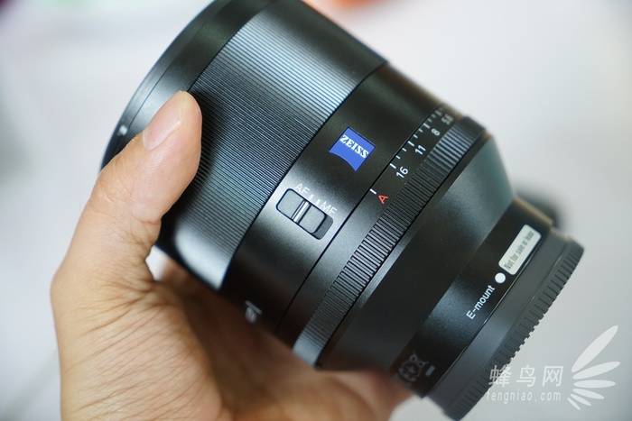 對(duì)焦模式開(kāi)關(guān)和蔡司“小藍(lán)標(biāo)”位于鏡頭側(cè)面
