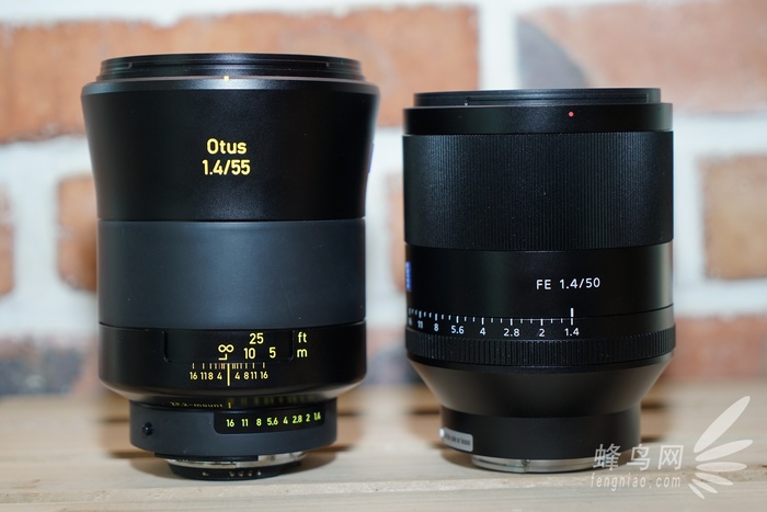 在大家可能非常關(guān)心的尺寸部分,我在現(xiàn)場(chǎng)將索尼FE 50mm F1.4 ZA鏡頭與索尼FE 85mm F1.4 GM鏡頭、蔡司Otus 55mm F1.4鏡頭進(jìn)行了對(duì)比。其中最令我印象深刻的還是與“巨人”般的Otus鏡頭對(duì)比,要知道索尼FE 50mm F1.4 ZA鏡頭可是一款微單鏡頭啊!可見(jiàn)為了追求大光圈和畫質(zhì)表現(xiàn),鏡頭體積和重量勢(shì)必要大幅增加。