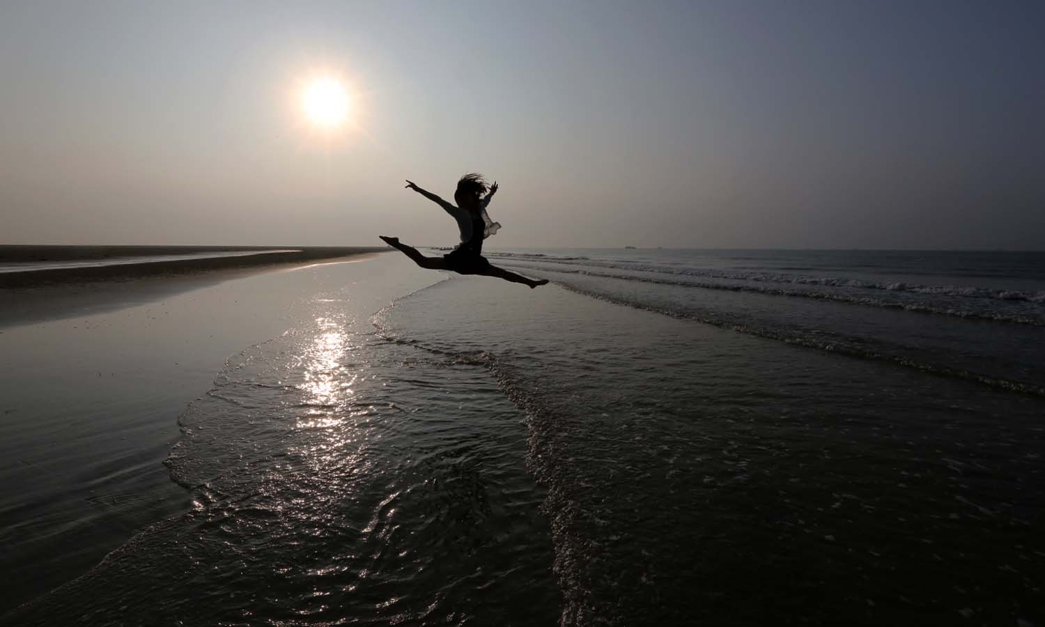 北海的誘惑再次讓我親近自然,朝陽下,碧波蕩漾的大海、泛著銀光的沙灘、無窮無盡親吻著海灘的浪濤,還有深秋的天空,同行的伙伴,以他們年輕柔韌的肢體,應(yīng)和著大自然每時每刻都呈現(xiàn)著的壯美,舞動著內(nèi)心的快樂與澎湃的激情.