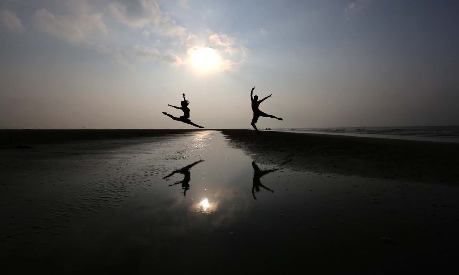 舞者輕盈的步伐,傾動的是美的樂章,翩翩起舞的翅膀,迎接的是東方的朝陽。她們舞動著,優(yōu)美的身體化作一串奇異的音符,在大自然融匯成一曲華麗的樂章。這也是人與自然和諧共處的魅力所在,作者徐益飛用舞者的戶外靈動描繪出這一真諦——《舞動生命親近自然》。