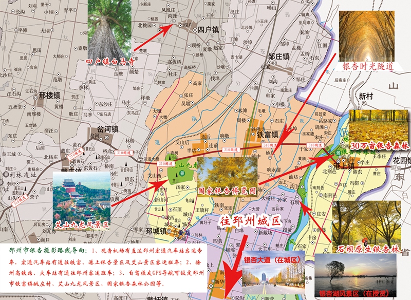 邳州銀杏甲天下。這里有最美的銀杏路(全長3公里的鐵富鎮(zhèn)姚莊村銀杏時光隧道);這里有最大的銀杏生態(tài)園(連綿30余萬畝的“銀杏森林公園”);這里有最古老的銀杏樹(北魏正光年間所植的四戶鎮(zhèn)白馬寺千年古銀杏樹);這里有“江蘇最美鄉(xiāng)村”(枝繁葉茂的銀杏樹掩映環(huán)抱著港上鎮(zhèn)前湖村,詮釋著新農(nóng)村的生態(tài)和諧之美);這里有規(guī)模最大的國家銀杏博覽園;這里有銀杏湖風景區(qū)(全國首家集發(fā)電、蓄水、灌溉和銀杏觀光旅游為一體的大型綜合性樞紐工程);這里有綿延10公里的全國最長“銀杏大道”(位于邳州市東城區(qū),為城區(qū)一條東西向主干道,路兩側(cè)全部栽植銀杏樹)……