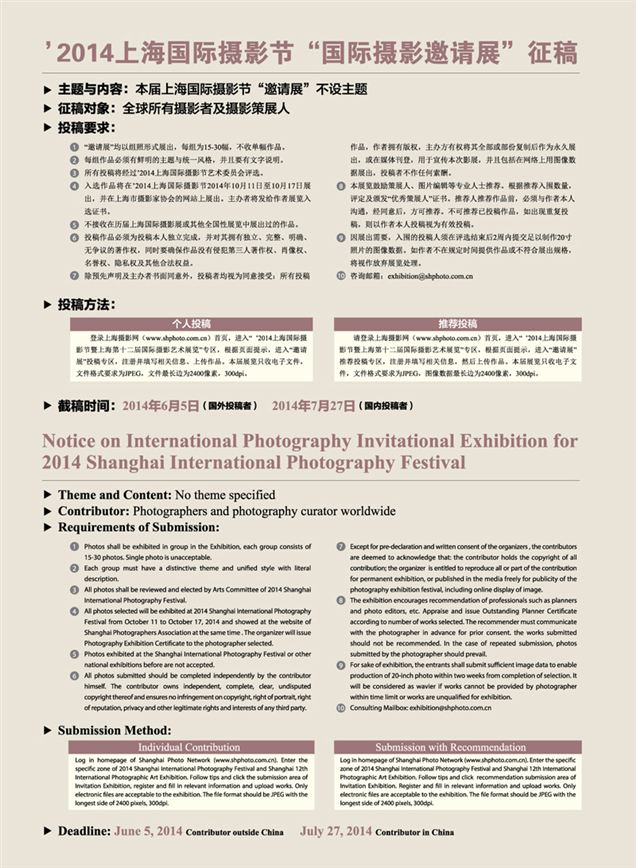 省內(nèi)賽事-2014上海國(guó)際攝影邀請(qǐng)展 征稿啟事