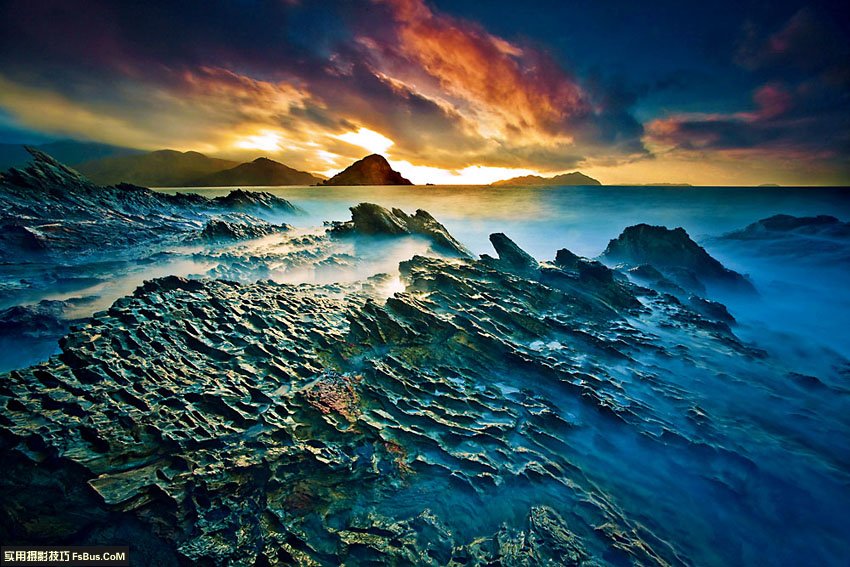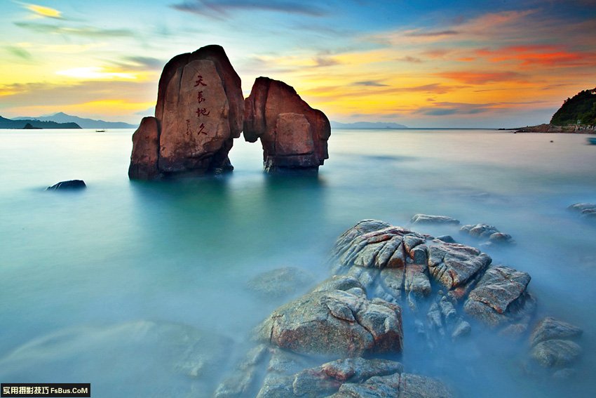 構(gòu)圖按傳統(tǒng)的攝影構(gòu)圖原則,即三分原則,以海平面做參考,特別注意水平,拍海由于人眼看海的習(xí)慣,傾斜的海平面會(huì)干擾小腦的平衡,讓人難受。至于海平面放在三分之一處,還是三分之二處,看具體情況而定,例如要突出表現(xiàn)前景,可讓前景占三分之二。有完美的晚霞或朝霞倒影時(shí),可打破常規(guī)構(gòu)圖。拍海有特殊性,就是哪里的海遠(yuǎn)景都一樣,因此前景變得很重要,有了好的前景就成功了一半,加上天氣和云象的配合,一定是張精彩的片子。