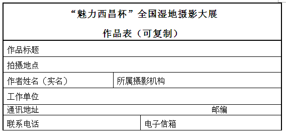 北京市東城區(qū)東四十二條48號中國攝影報社活動部“魅力西昌杯全國濕地攝影大展”辦公室收(100007)