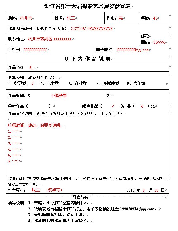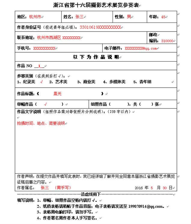 參賽表下載:浙江省第十六屆攝影藝術(shù)展覽參賽表