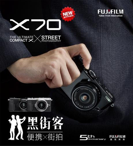 作為慶祝X系列上市五周年推出的多款新型號(hào)之一,X70兼具新機(jī)各款優(yōu)點(diǎn),不但支持方便的手動(dòng)操作,還能提供卓越的圖像質(zhì)量和多種拍照功能。 它是X系列中首款配置觸摸顯示屏的機(jī)型,180度旋轉(zhuǎn)的觸摸顯示屏可方便進(jìn)行仰拍、俯拍和自拍。