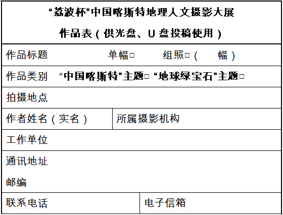 北京市東城區(qū)東四十二條48號中國攝影報(bào)社活動(dòng)部“荔波杯喀斯特?cái)z影大展”辦公室收(100007)