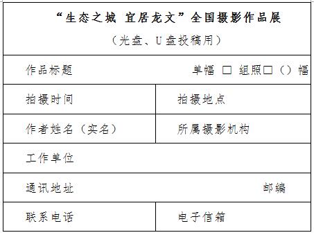 投稿作品以光盤(CD-R或DVD-R)、U盤存儲形式郵寄至:北京市東城區(qū)東四十二條48號中國攝影報社活動部 “龍文全國攝影作品展”辦公室(100007)