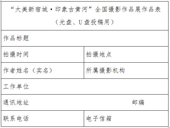 光盤、U盤包裝盒上注明該作品征集的名稱,每幅作品文件名處注明作品標(biāo)題,同時(shí)提供作者資料及作品信息(word文檔)。投稿作品為JPG格式,圖片統(tǒng)一處理為長邊600-1000像素,文件大小控制在500KB以內(nèi)。無相關(guān)資料的投稿作品,主辦單位有權(quán)取消其參評(píng)資格。投稿作品以光盤(CD-R或DVD-R)、U盤存儲(chǔ)形式郵寄至:北京市東城區(qū)東四十二條48號(hào)中國攝影報(bào)社活動(dòng)部“大美新宿城·印象古黃河全國攝影作品展”辦公室(100007)
