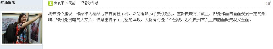各位影友,天下攝影網舉辦的“提寶貴建議 贏豐富獎品”活動,提交針對博客版面美化,博客功能完善,用戶體驗等建設性意見,感謝各位影友提出寶貴的意見,我們會根據各用戶提出的意見對天下攝影網進行適當的修改。