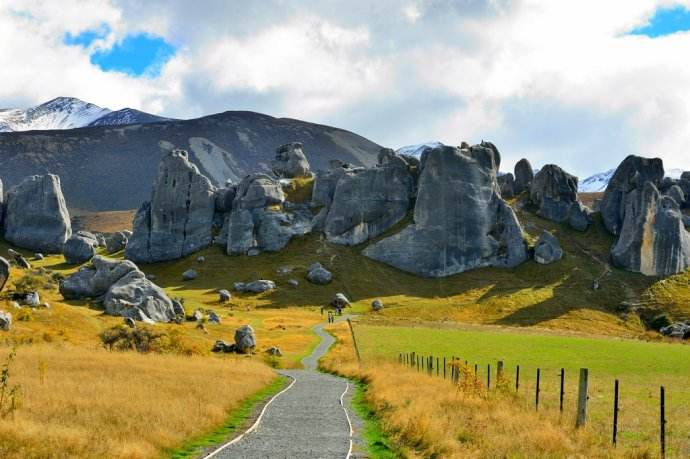 上午前往西海岸【帕帕羅瓦國(guó)家公園】?jī)?nèi)的地質(zhì)奇觀【薄餅巖】拍攝,成千上萬年以來,小型海洋生物和沙土間交替層壓并埋于海底,產(chǎn)生了硬石灰石和軟砂巖堆積而成的多層巖石酷似薄餅。漲潮時(shí),可能抓拍到水從巖石孔洞里噴涌而出,甚至高20-30米,發(fā)出令人震撼的轟鳴聲。下午穿越【亞瑟山口國(guó)家公園】,途經(jīng)Waimakariri river,懷馬卡里里河從南阿爾卑斯山向下流經(jīng)坎特伯雷平原注入太平洋,還有電影《納尼亞傳奇》拍攝地【城堡山】