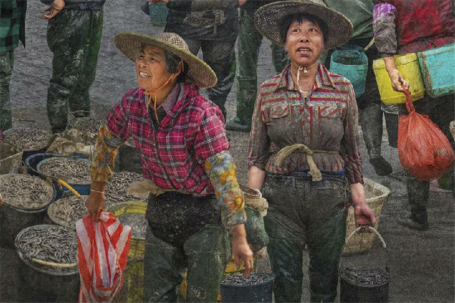 隆冬臘月的寒冷不屬于趕海人辛勞的范疇,盛夏七月的酷暑擋不住趕海人奔向幸福生活的腳步。一框框海鮮,一籃籃海貝,都是趕海人生的全部春秋,她們的微笑,盛開在魚貨碼頭……