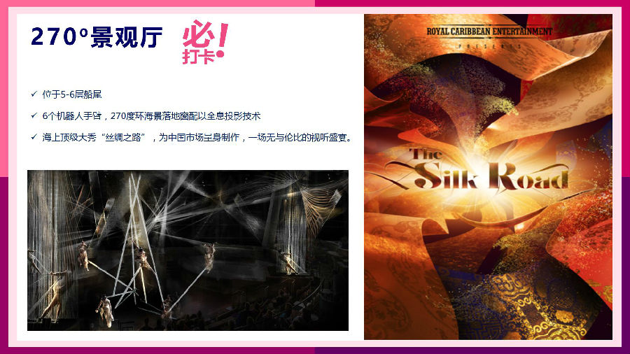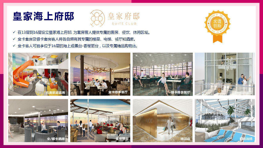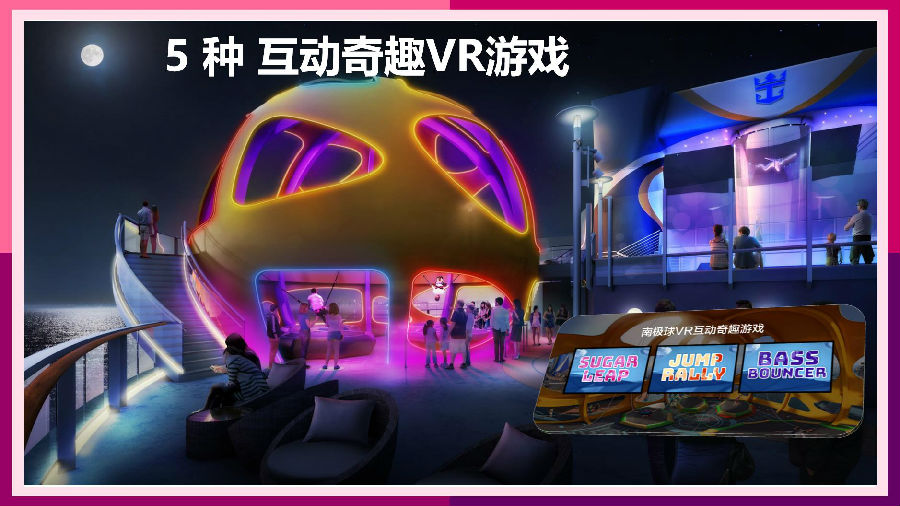 于2019年6月3日于上海首航,是皇家加勒比國際游輪最新的超量子號船系船只。超量子標(biāo)志性設(shè)施—南極球是一個直徑為11米的中空橙色球體,位于船尾左旋,與船艏的北極星相對。它的設(shè)計靈感來源于自由落體從北極出發(fā),穿越地心最終抵達(dá)南極,在地球引力作用下發(fā)生的物理加速與減速過程。球外為懸空玻璃步道,球內(nèi)設(shè)有四個蹦極床,為旅行者模擬穿越地心之旅,以VR科技創(chuàng)造的視覺歷險體驗。