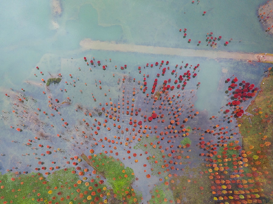 紅樹林:黃巖長潭湖畔,有大片的紅樹林,帶來不一樣的江南喀納斯風光,在陽光下如火如荼,與水中倒影相得益彰,美不勝收,來到這里,仿佛闖入了新天地,煙波浩渺,杉紅如霞,驚艷了一臉……