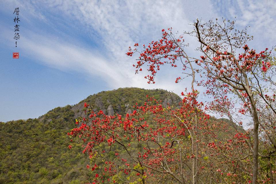 站在遠(yuǎn)處眺望,只見片片紅霞璀璨,映紅了青山,那是大自然神奇的筆墨畫卷。