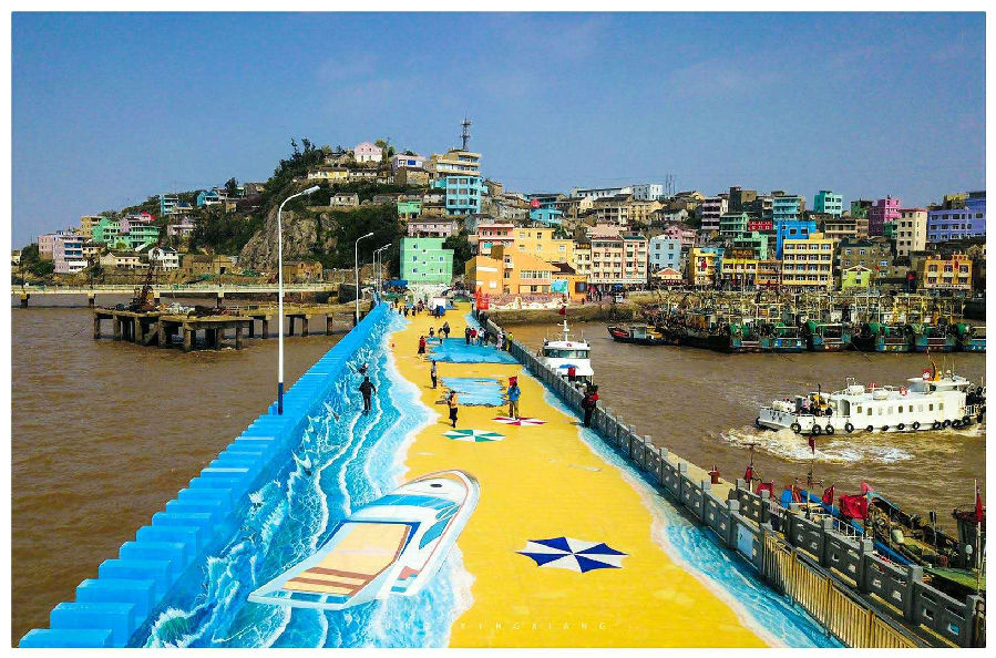 島上漁民民居一排排層層疊疊的臨海修建。這些別具一格、風(fēng)味獨(dú)特的民居墻體多是采用毛石塊料壘砌而成,色調(diào)統(tǒng)一、堅(jiān)固厚實(shí),猶如西藏拉薩的布達(dá)拉宮,覆蓋著大半個(gè)島嶼。