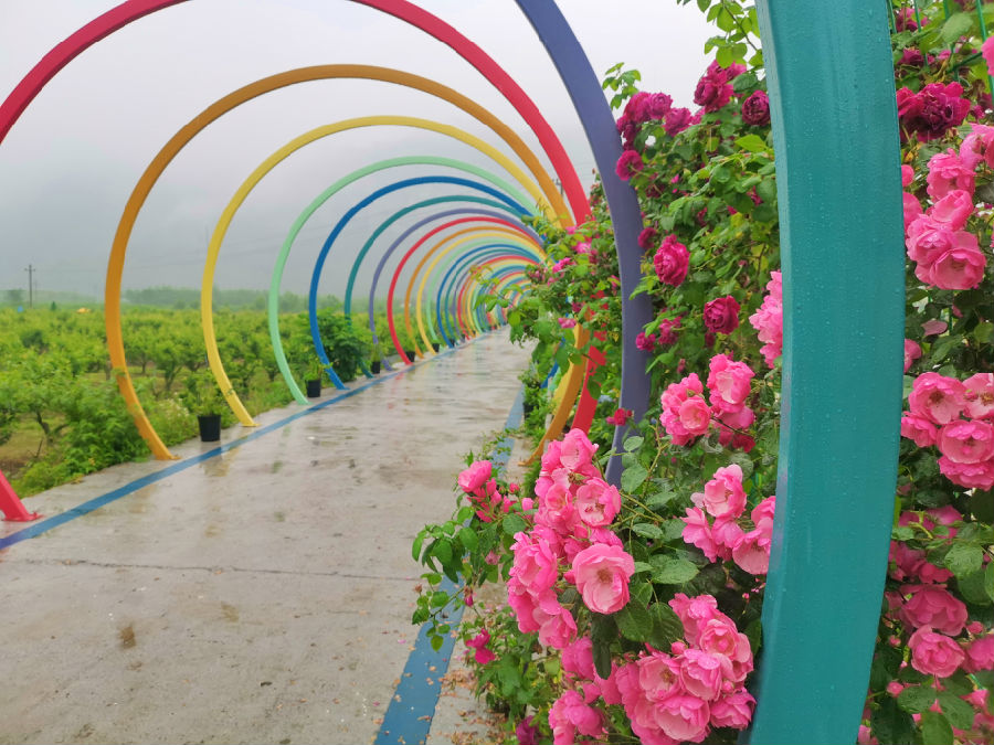 龍溪鄉(xiāng)始豐源村有一條千米薔薇長廊,花開的正艷,保證你來逛一趟就能掃除所有生活和工作上疲憊,蓬勃綻放,藤蔓攀沿著“樹枝”做成的拱形長廊,細細滿滿的編織起一條五彩斑斕的通道,點點陽光從縫隙中漏下,在明媚中帶著一絲清涼。
