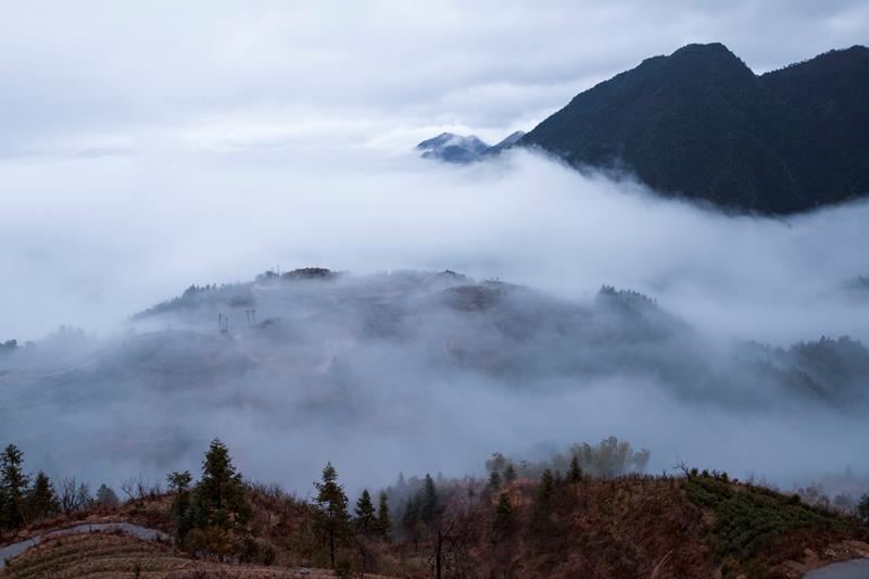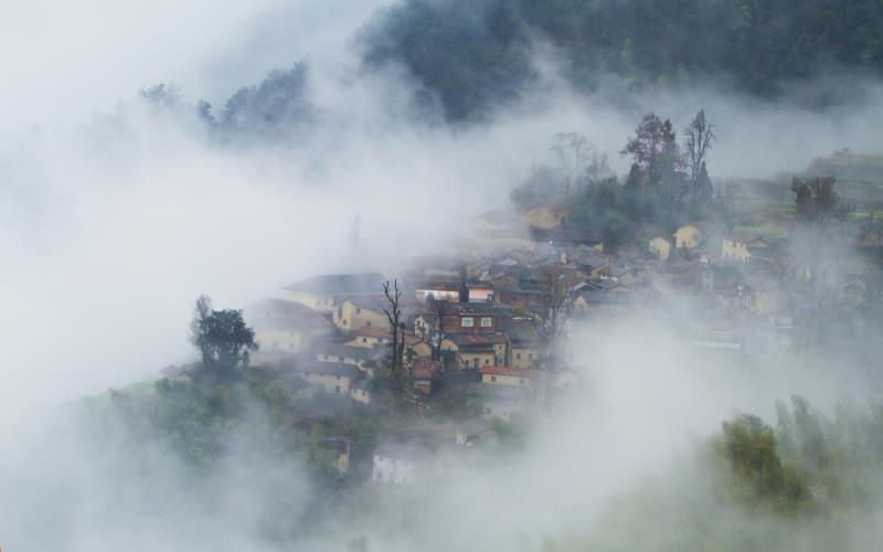 四都鄉(xiāng)各村莊平位于層巒疊嶂的深山里,境內(nèi)山脈連綿,群峰聳立,溝壑縱橫,自西向東走向的仙霞嶺山脈北脈,成了南均海拔700余米,多數(shù)村莊北分水嶺。獨(dú)特的地理環(huán)境,使四都?xì)夂蜃兓惓4,晝暖夜涼,溫差大,造就了在雨后或空氣濕度較大時(shí)的早晨,極易形成云海、云霧繚繞山澗等壯觀景象。由于此處風(fēng)景優(yōu)美,氣候宜人,佇立于此,還可遙望松陽(yáng)縣城,其云霧繚繞、村莊隱現(xiàn)之景象孕育了不少攝影佳作,因此,四都的另一張名片即是攝影。
