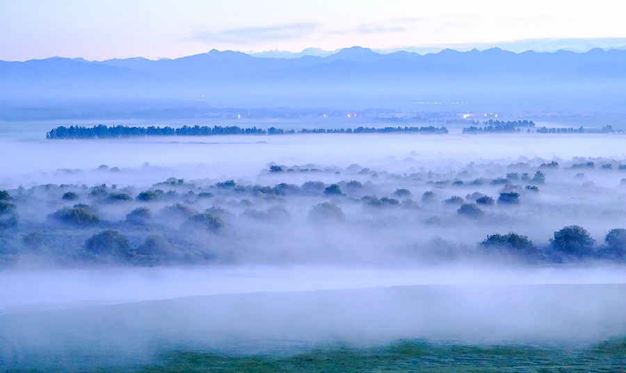 早餐后出發(fā)去特克斯換成越野車去美人背,沿途的瓊庫什臺(tái)風(fēng)光更是令人一路驚訝,車輛在驚叫聲中停停走走,大家行行攝攝。在光影的映襯下,高低起伏的草原、一座座潔白的氈房和木屋,使草原充滿了生機(jī)和活力,令人向往!日落西山之際,便是美人背再現(xiàn)之時(shí)。拍攝每人背結(jié)束以后趕往瓊庫什臺(tái)村。