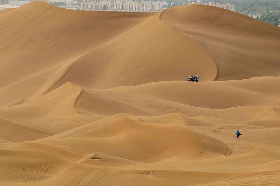 庫木塔格大沙漠,是世界上唯一與城市相連的沙漠,長年與綠洲友好相處,親如近鄰,創(chuàng)造了“沙不進(jìn)、綠不退、人不遷”的世界奇跡。牽手城市的大沙漠——庫姆塔格夢(mèng)中的沙漠,總是給人“大漠孤煙直,長河落日?qǐng)A”的感覺,神秘的景象是那么的令人向往。