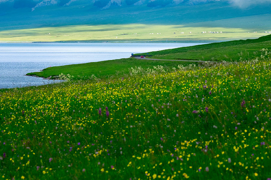 早餐后出發(fā),沿途是風(fēng)光秀麗的昭蘇田園,6-7月也是油菜花、香紫蘇盛開時(shí)節(jié),昭蘇草原一望無垠的昭蘇草原,綠草如織,駿馬馳騁,牛羊遍野;秀美的夏塔古道、夏塔谷地,綠草如茵、野花遍地、蜂飛蝶舞、五彩斑闌,清澈碧綠的夏塔河猶如一條玉帶,岸邊的座座氈房好似珍珠點(diǎn)綴其上。