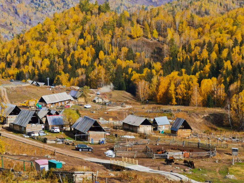 白哈巴:位于中國與哈薩克斯坦接壤的邊境線上,這里風光秀麗,民風純樸,是典型的圖瓦人原始村落,這里原始自然生態(tài)與古老傳統(tǒng)文化共融,一切都還保存著幾百年來固有的原始風貌。