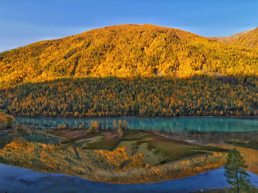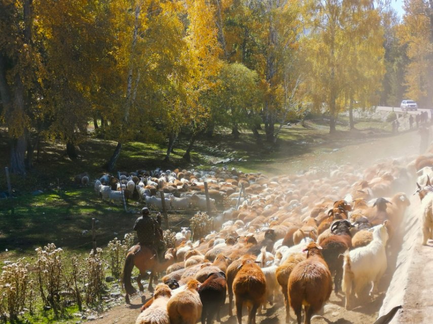 早餐后前往金秋的喀納斯是最浪漫的季節(jié),被世人稱為“上帝的調(diào)色板”,金黃和火紅隨意撒抹在一片片森林中,遠處山頂白雪皚皚,近處圖瓦人村落錯落有致!悠閑漫步的牛羊,炊煙裊裊的白色氈房,信步走來的哈薩克小姑娘,婷婷玉立的愛情--白樺樹,匆忙轉(zhuǎn)場的牛羊群,這一切的一切都是公認的歷屆影賽作品獲獎的好機會!