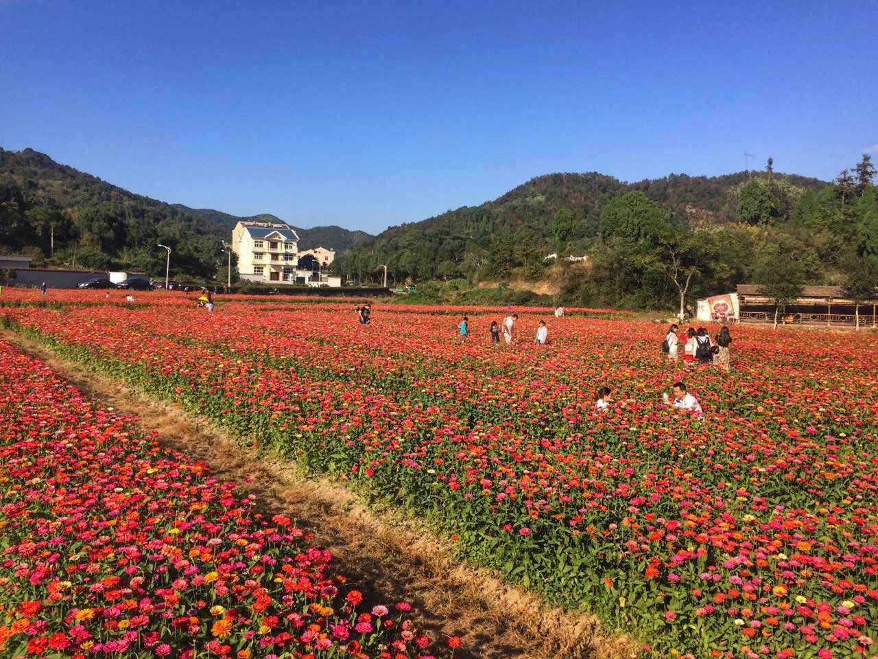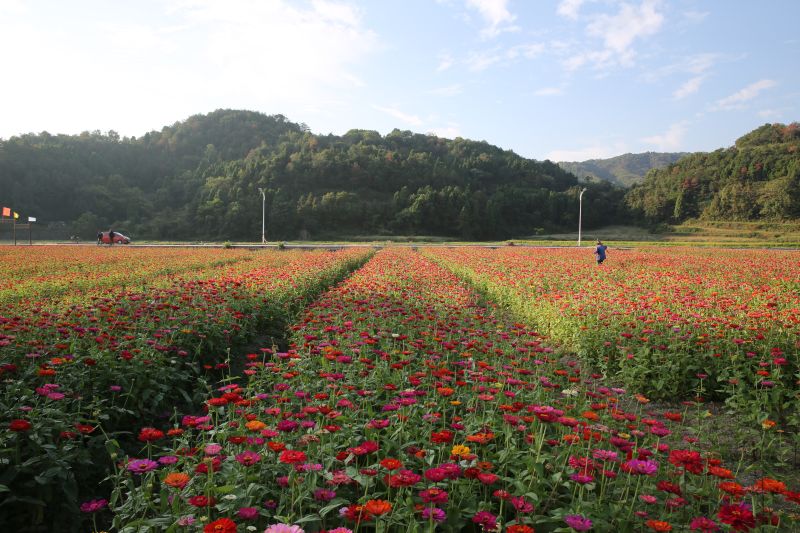 寨門(mén)村位于浙江省臺(tái)州市溫嶺市城南鎮(zhèn),寨門(mén)村“七彩花海”種植了8畝荷花、30畝百日菊、20畝向日葵及近90畝二茬馬鞭草。70多畝百日菊競(jìng)相綻放。